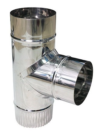 Используется для соединения дополнительного горизонтального участка дымового канала с основным вертикальным. Подключение "по конденсату". Толщина стали 0,5 и 0,8 мм.