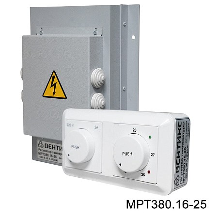Симисторные регуляторы МРТ380.16-25 (МРТ380.16-40) предназначены для поддержания температуры воздуха и регулировки скорости вентилятора на 220В в системах вентиляции с электрическим калорифером. Поддержание температуры происходит за счет периодического включения/выключения ТЭНов нагревателя. Максимальный ток вентилятора на 220В: 2А.