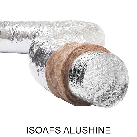 ISOAFS-ALU SHINE ECOSOFT представляют собой гибкие теплоизолированные герметичные воздуховоды, выполненные из нескольких слоев металлизированного полиэстера и алюминиевой фольги (гибкий алюминиевый воздуховод), со спиральным каркасом из стальной проволоки, покрытой изоляцией из стекловолокна. Внешний чехол гибкого воздуховода выполнен из паронепроницаемой алюминиевой фольги.