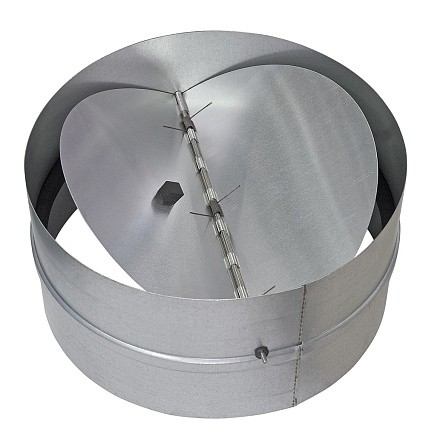 Обратный клапан КОв с подпружинными лопастями обеспечивает автоматическое перекрывание круглых воздуховодов при выключении вентилятора.