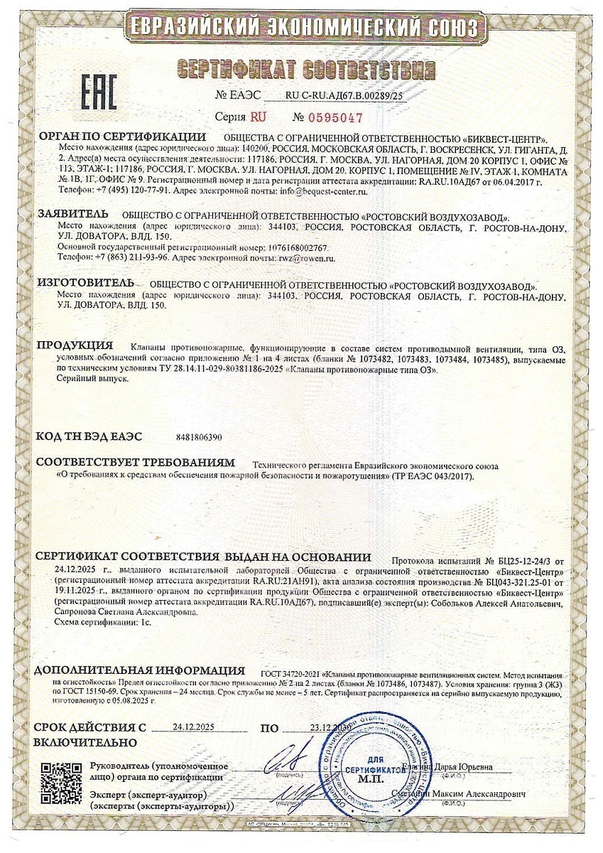 Заслонки и клапаны для систем дымоудаления