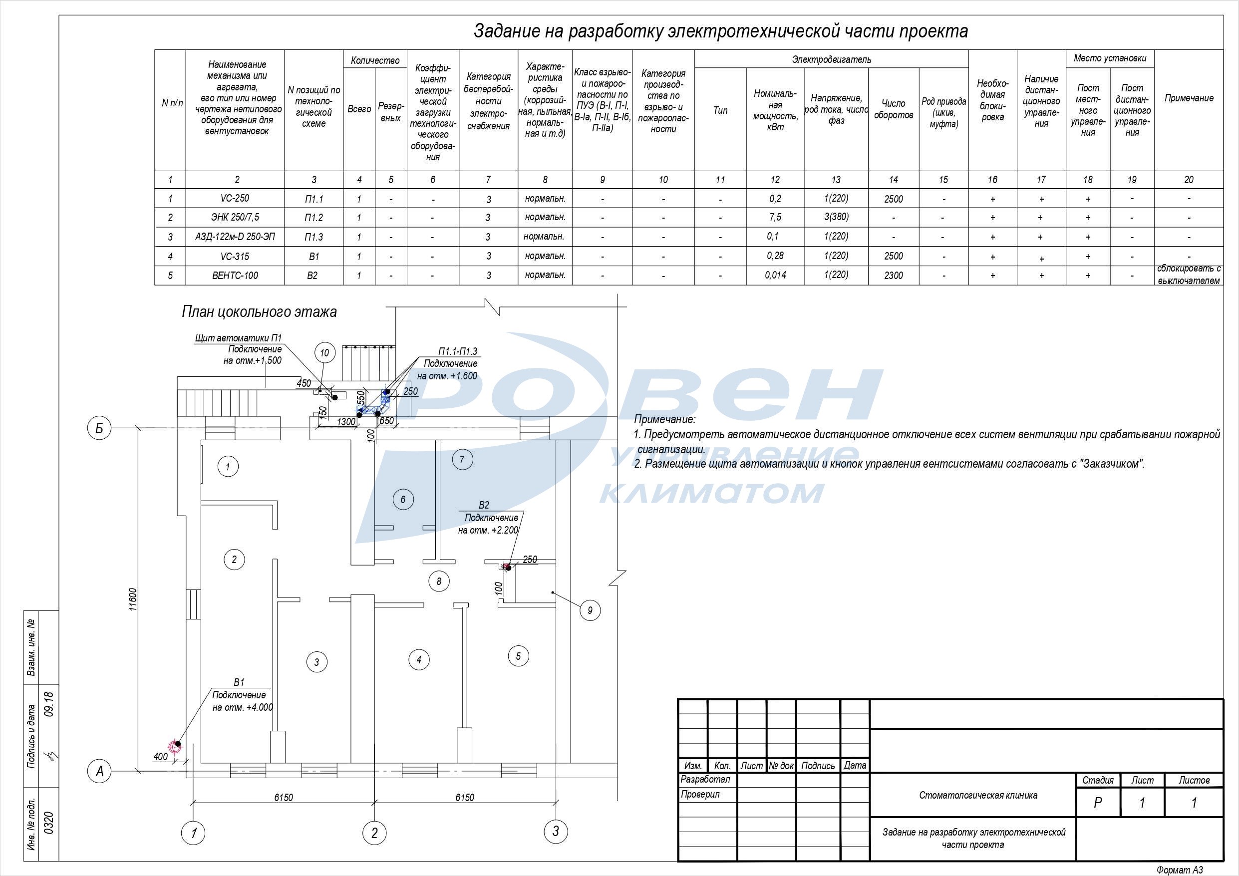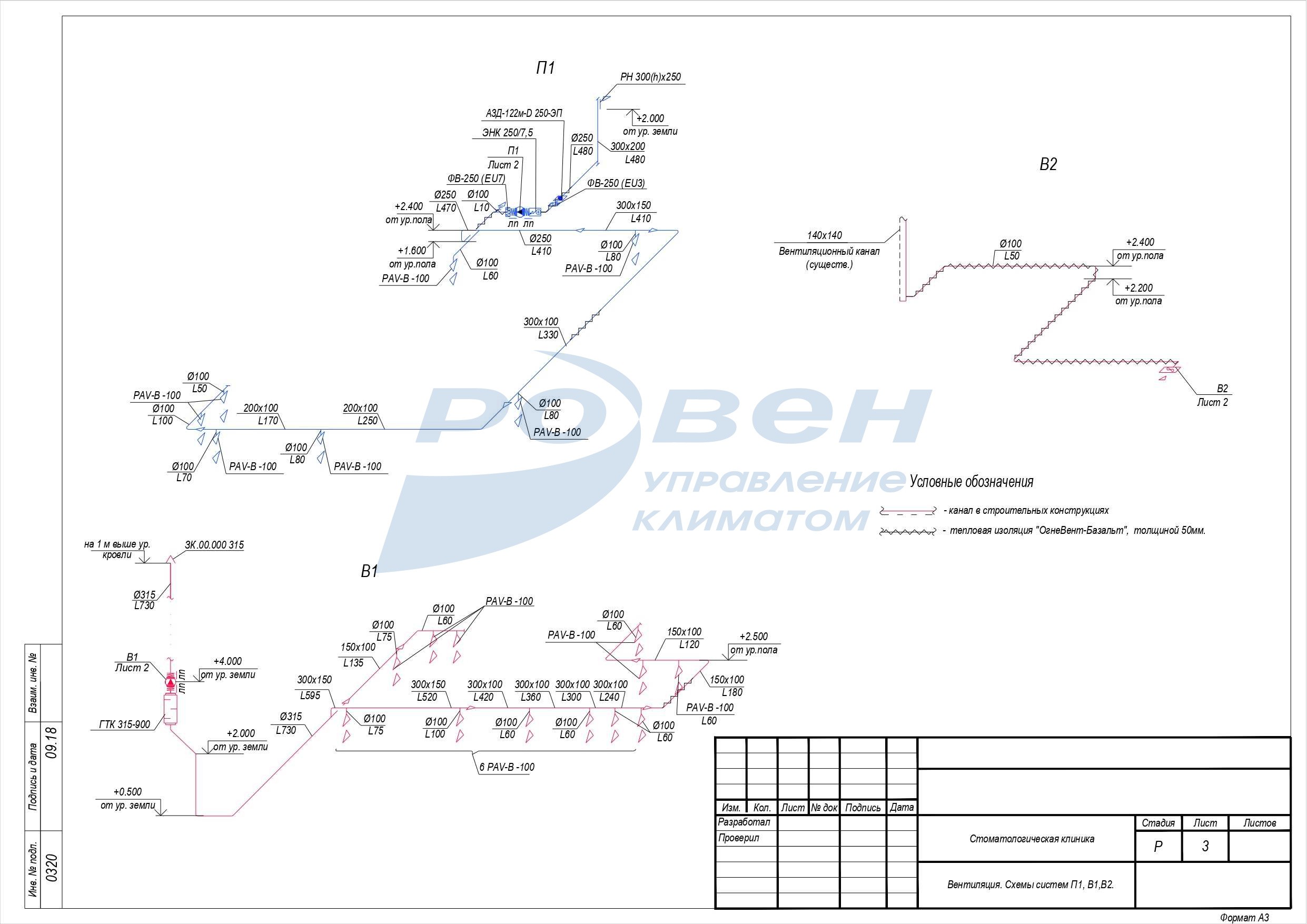 В помещениях стоматологической клиники предусматривается устройство систем приточно-вытяжной вентиляции с механическим побуждением.