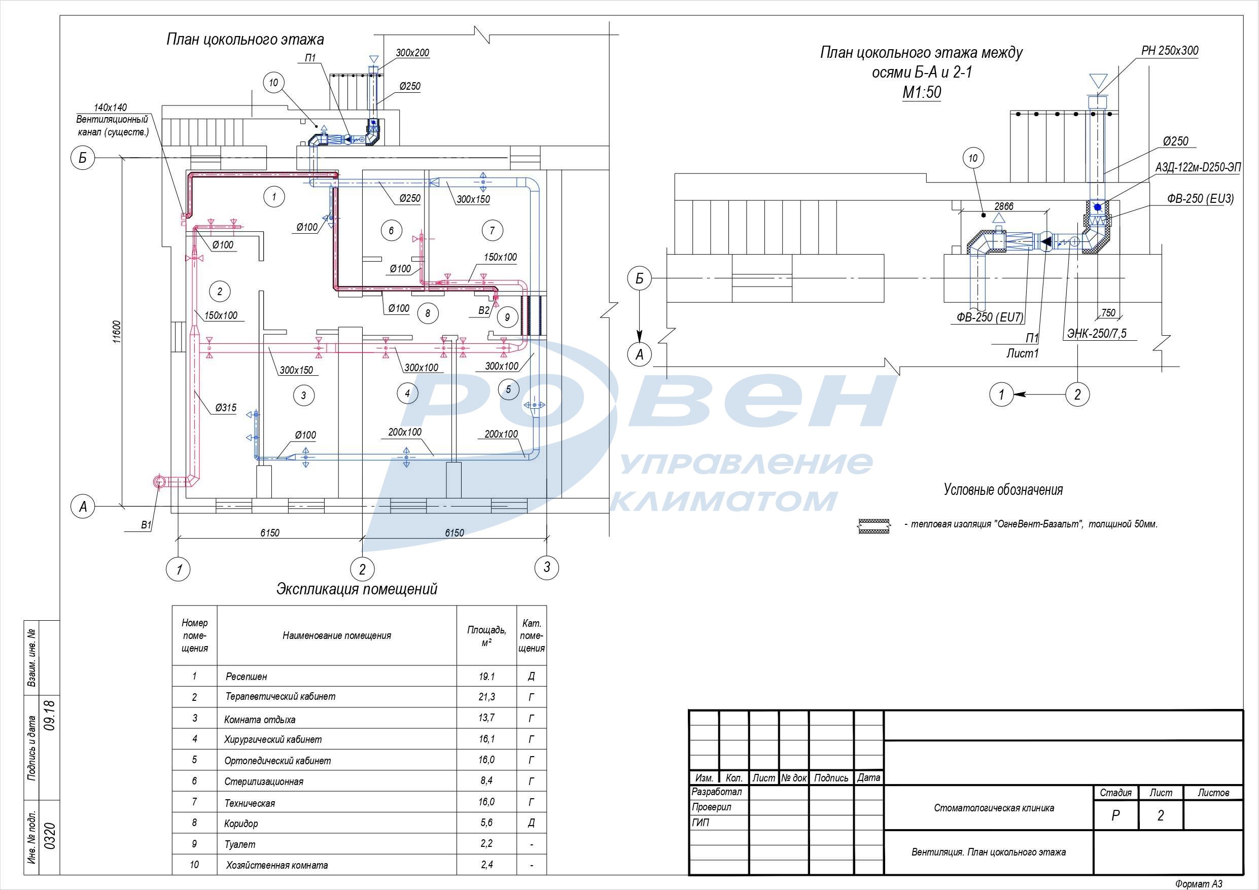 Самостоятельные приточные и вытяжные системы предусмотрены для лечебных кабинетов и отдельно вытяжная для санузлов.